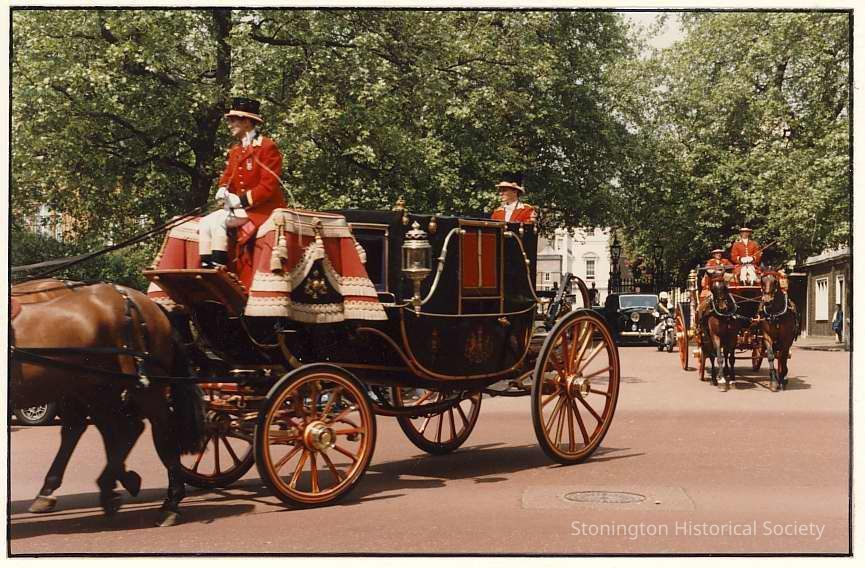Photograph of the Changing of the Guard, May 1986. Note on back indicates this was when the new Ambassador from South Africa was presenting his creditials to the Queen.