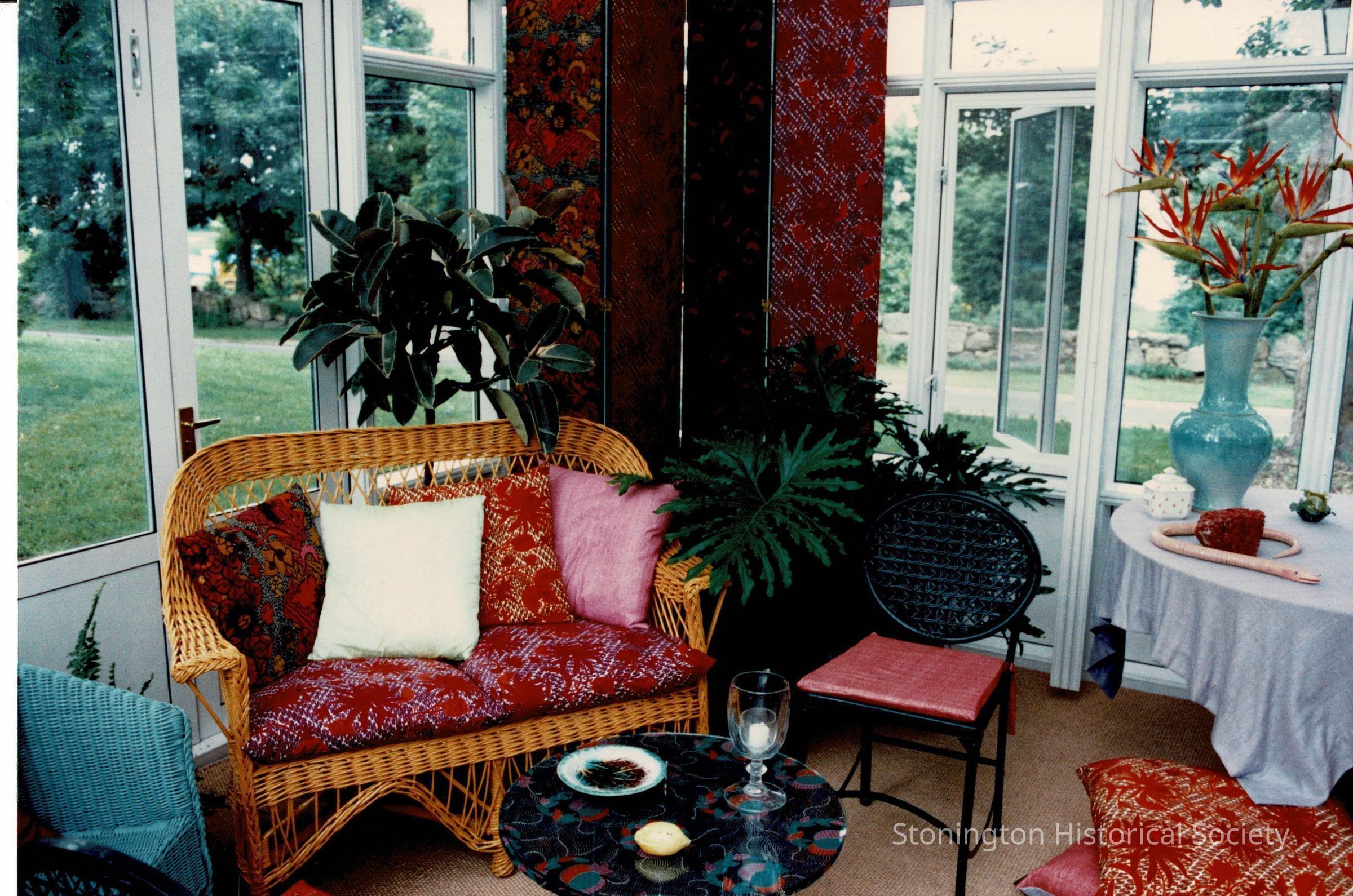 View of “A Summer Place” interior, as it was for the Designer’s Show House in 1989. A Summer Place was designed by Arnold Copper and William Strohm of Madison Avenue, NY. It was placed on the west side of the service yard, and removed after the Designer's Showhouse.Collection