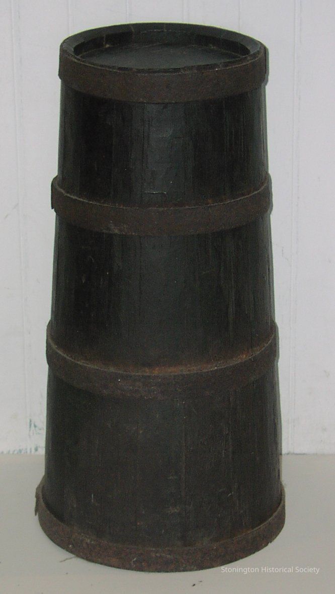 tapered barrel, dark wood, no cork hole, may have been used as a buoy