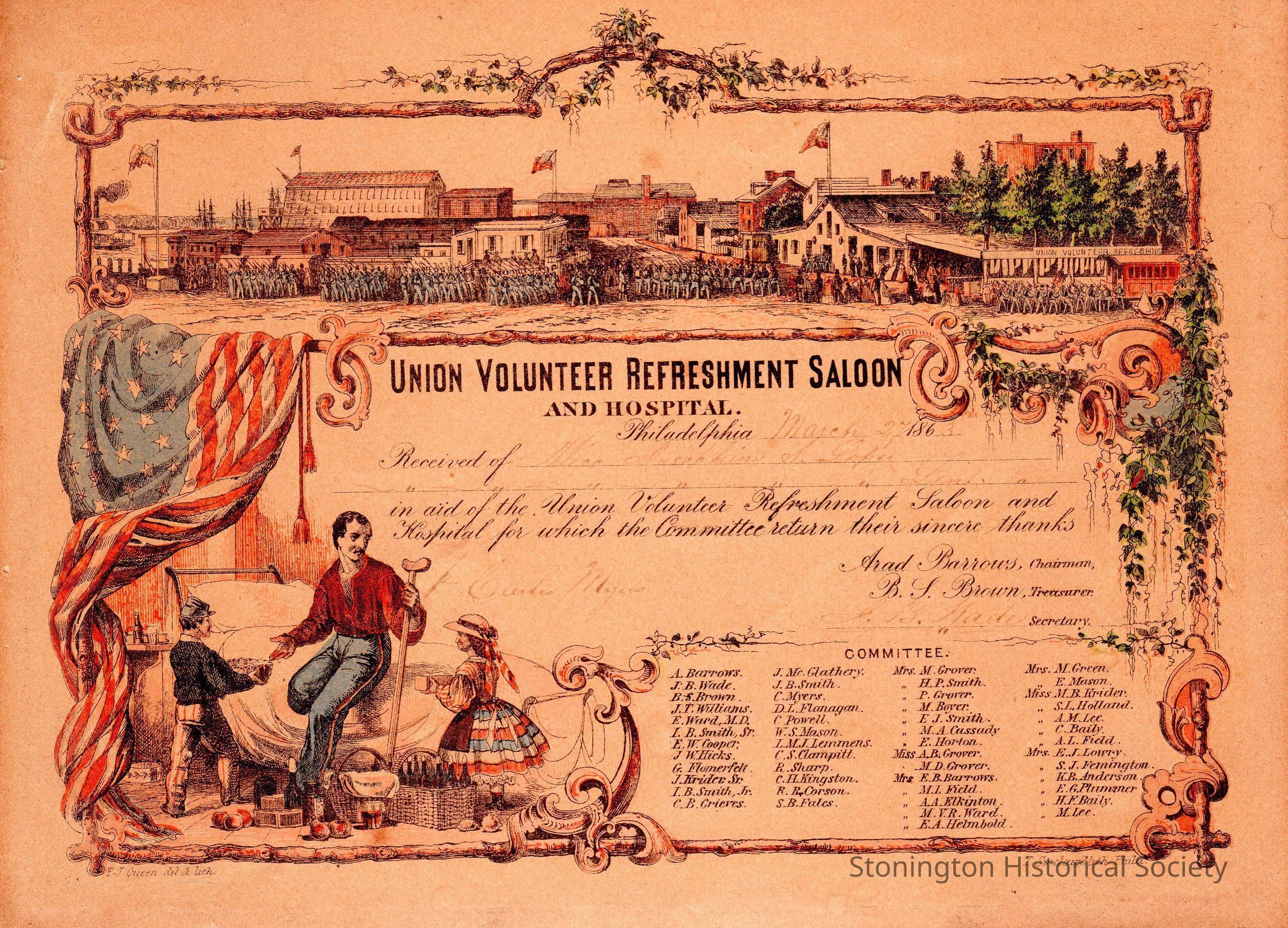 Certificate/Acknowledgement of Donation: "Union Volunteer Refreshment Saloon and Hospital," Philadelphia, recieved of Josephine Loper, March 27, 1863.