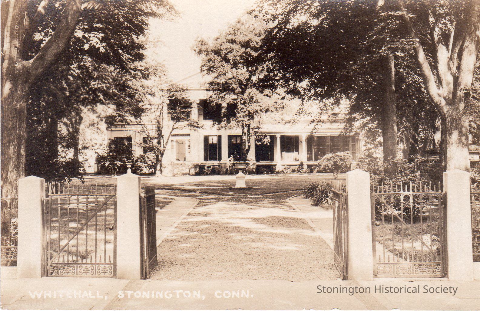 Black and white postcard, "Whitehall, Stonington, Conn.," showing the Charles Phelps Williams House, 39 Main Street, Stonington. 2 copies.