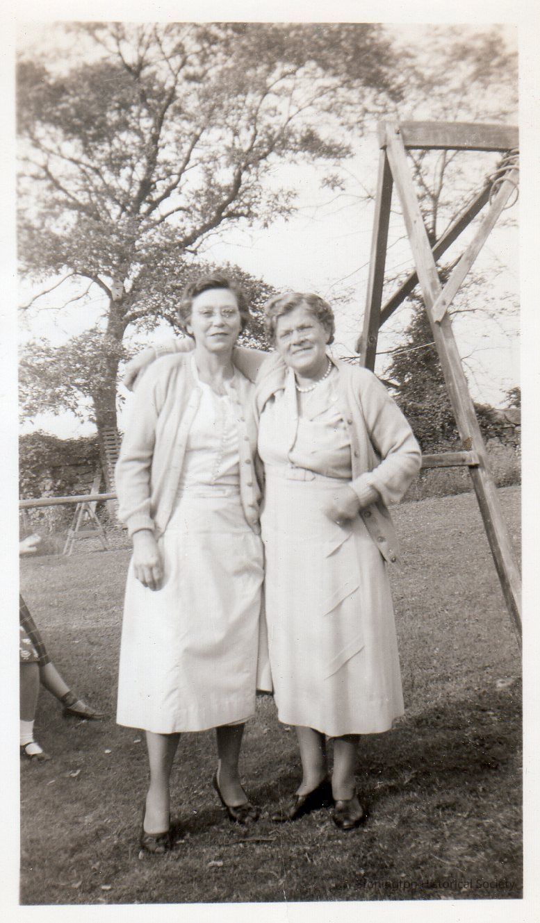 Snapshot of Clara Melvin (1893-1954) and Rose Northup (1901-1990). Clara was the wife of Irving T. Melvin (1892-1976) - they are buried together in Evergreen Cemetery. Rose was the wife of Harry Albert Northup (1890-1950) - they are buried together at Elm Grove Cemetery.