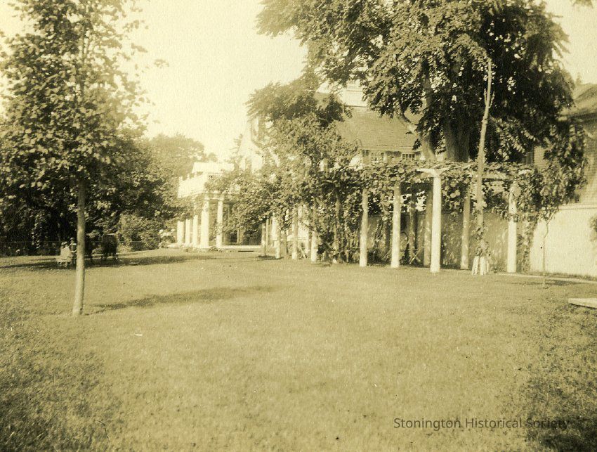 Covered walkway with vines at "The Hill," residence at 35 Grand Street
