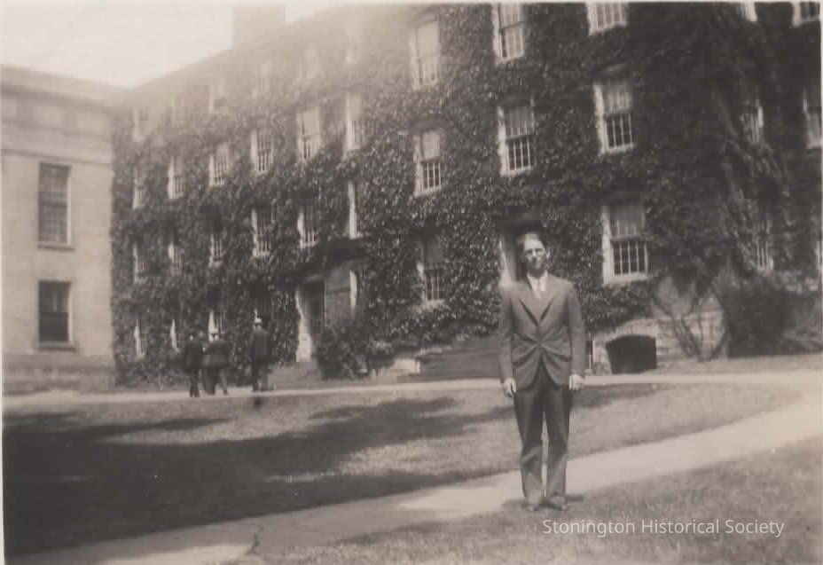 black and white snapshot, Howard Crouch near University Hall at Brown University for Allen's graduation, 1932.