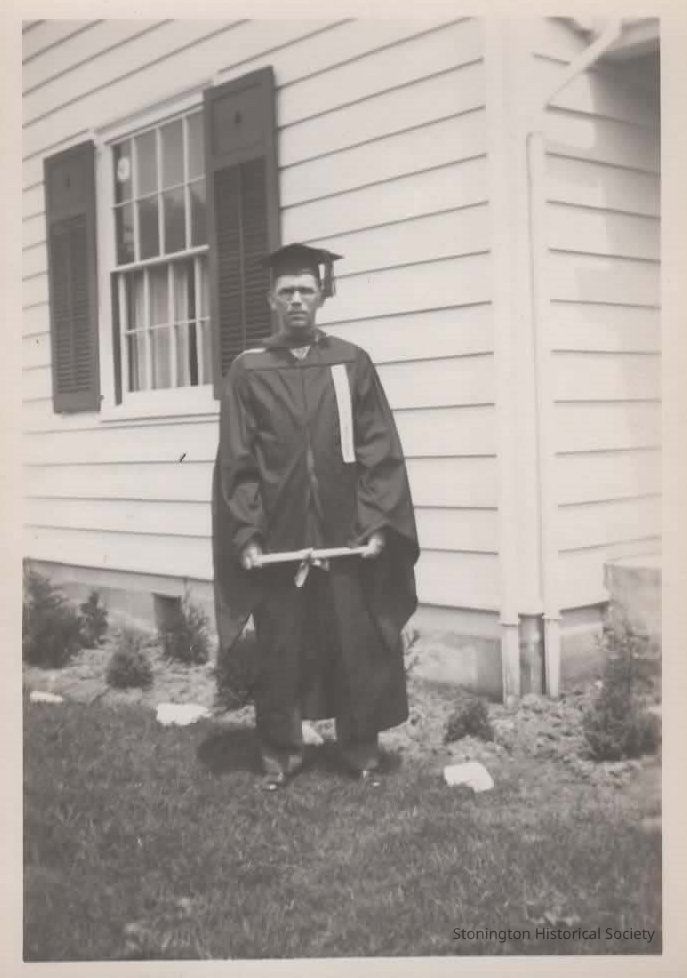 black and white snapshot, Howard Crouch at the University of Rhode Island for his graduation, 1933.