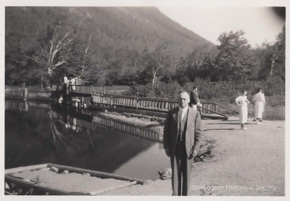 black and white snapshot, Stephen Crouch at Crawford Notch, 1936.