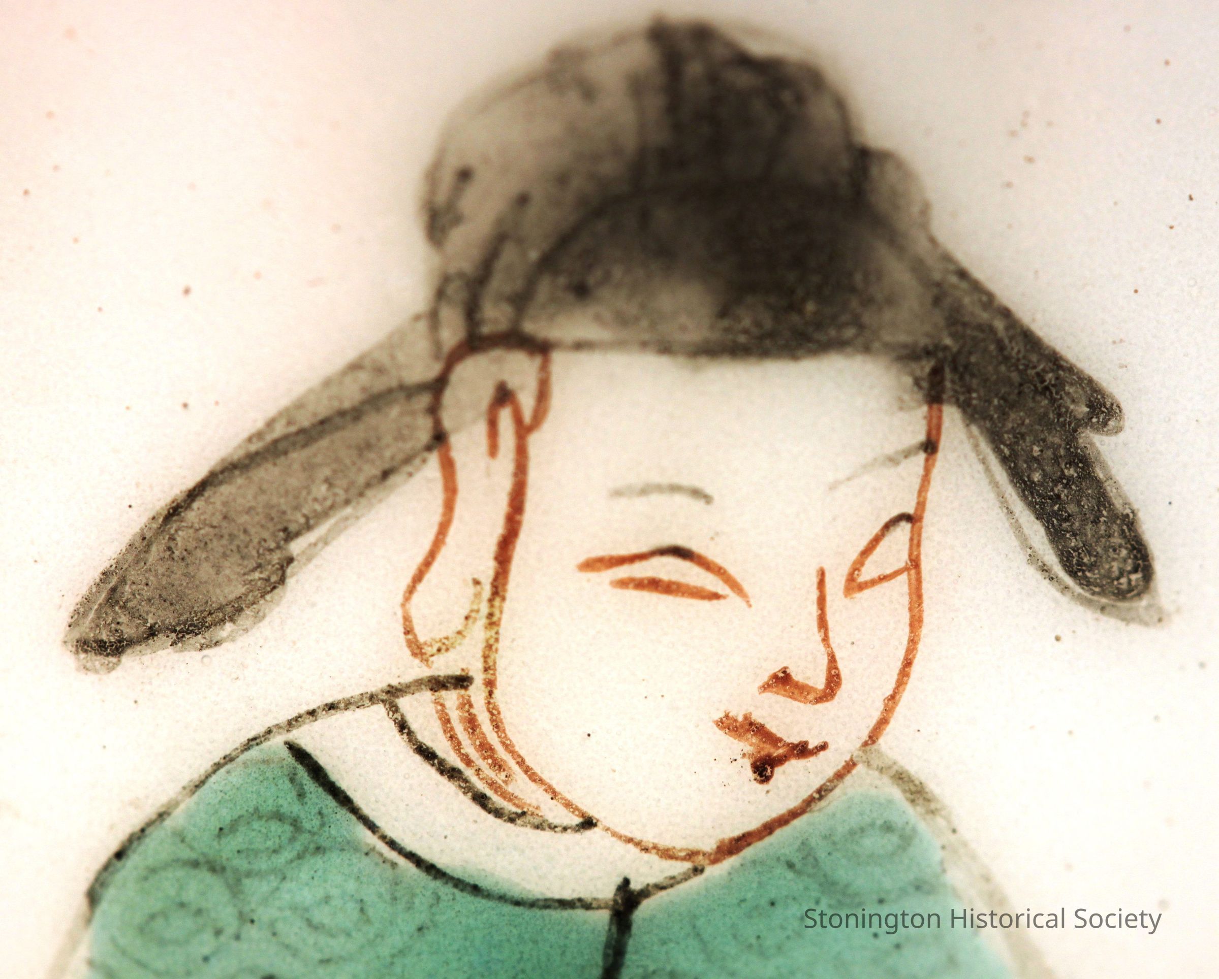 Chinese porcelain cup, in four parts, with a small figure of a bearded man inside with figures decorating the sides.