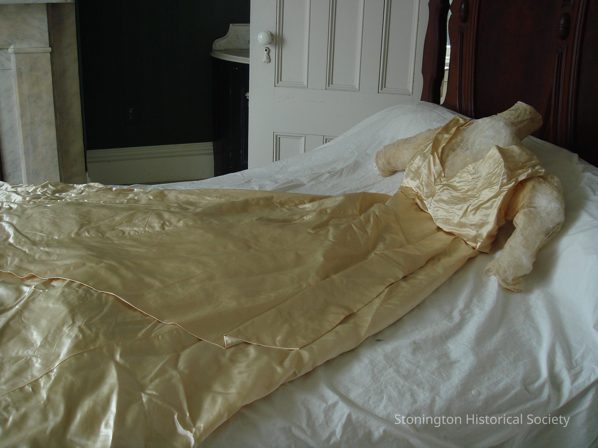 c-Tiara and Veil- wax blossoms white with tan paper buds