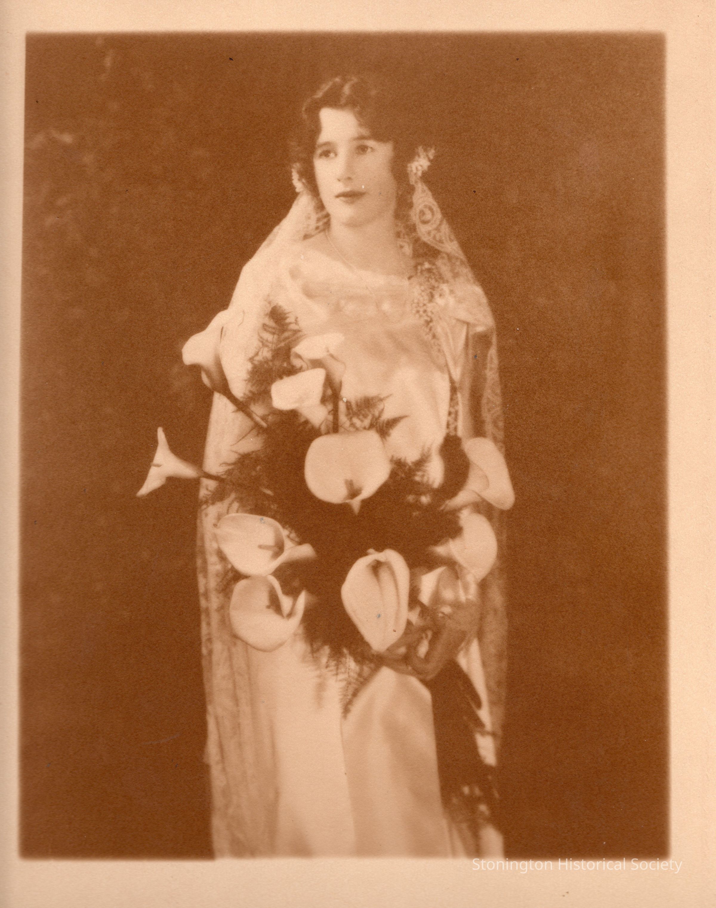 sepia photograph, wedding portrait, bride with orchids, "Emily Darrell"