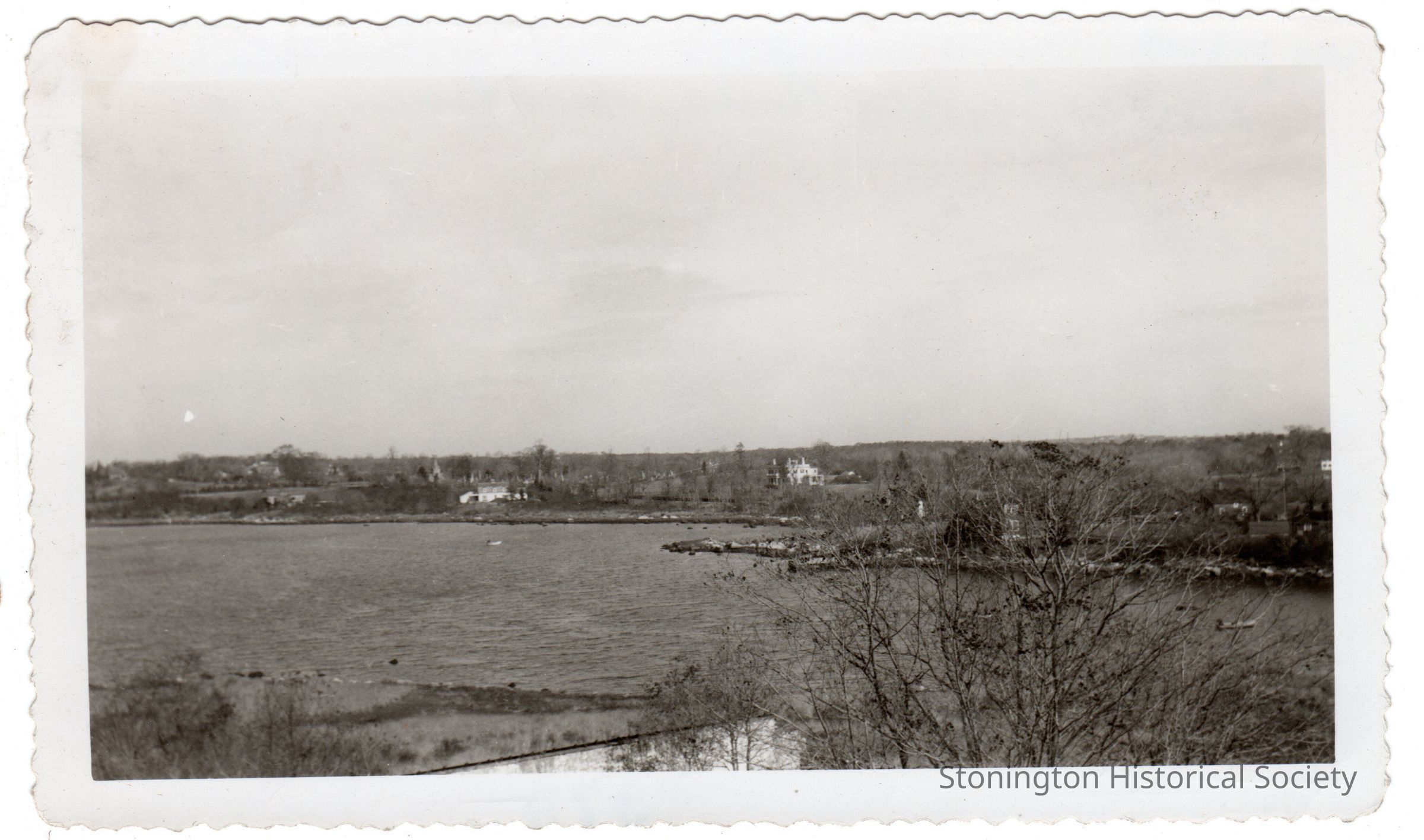 black and white photograph, "Back lot," seldom flooded, after a hurricane tide (1954 Hurricane) Pine Point? photo dated Nov 17 1954