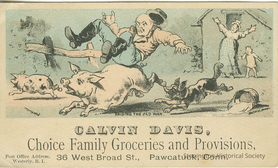 per Westerly/Pawcatuck Directory, Calvin Davis had grocery store at 33 West Broad St., 1888 and lived at 26 Moss Street. He is not in the directory of 1926 or later.Collection