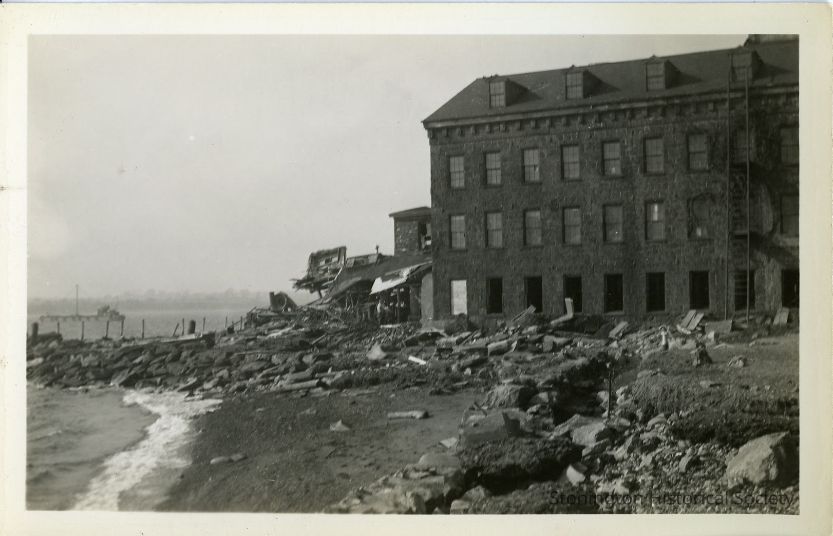 Back (harborside) of Atwood Machine Co. showing destruction View also shows part of the Atwood breakwater