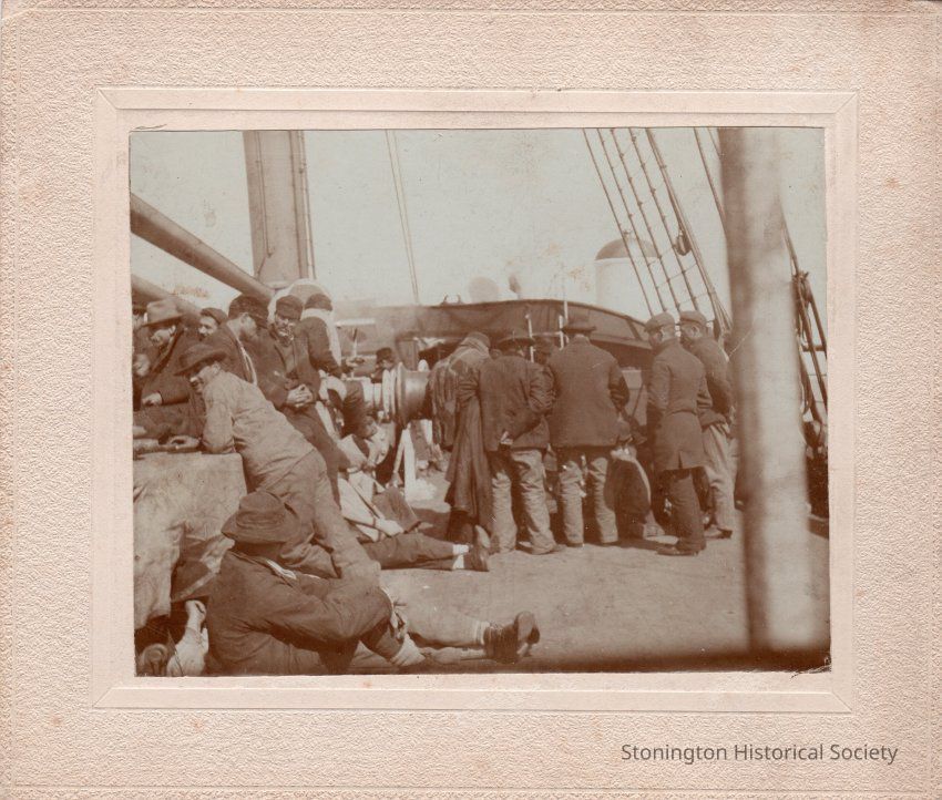 men on deck, written in ink on back: "Stearage pass time"Collection