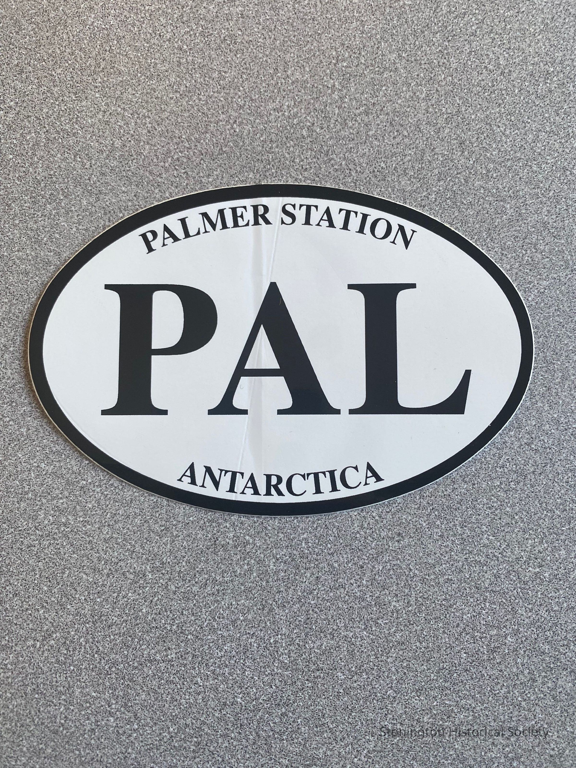 Oval sticker for the United States Antarctic Program, Palmer Station. Palmer Station is an American research base in Antarctica on Anvers Island, the only US station on the continent located north of the Antarctic circle. Initial construction of the station was finished in 1968. The base is much smaller than others on the continent, with about 40 staff, and is focused on marine and biology research such as seabirds and plankton.Collection