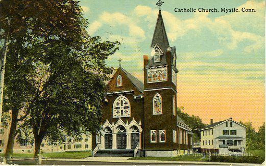 Catholic Church on East Main Street, Mystic Color photo Published P. Hammecher Former accession no. 1999.001.0224
