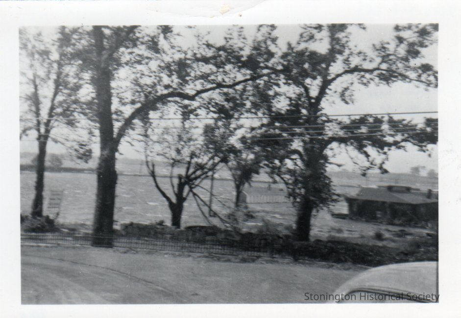Handwritten note from Hetsy Brown on back: "Field at Pine Point, flooded after a hurricane. This was a most uncommon occurence! (The flooding that is!) (Sept. 21, '38 Hurricane). The last train from New York that day stalled on the tracks crossing Stonington harbor. The passengers left the train, followed the tracks to safety. All but one passenger survived. An unfortunate Negro porter drowned. (About a dozen passengers spent the night and next day at Pine Point. For years, the family received cards at Christmas from them)."Collection