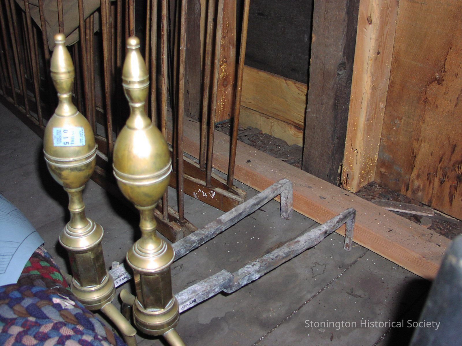Hand forged, brass, cast marks and draw marks. Pair Federal Andirons. L. P. Cottrell Sticker on one. National Van Lines # 015. Possibly originated in England.Collection