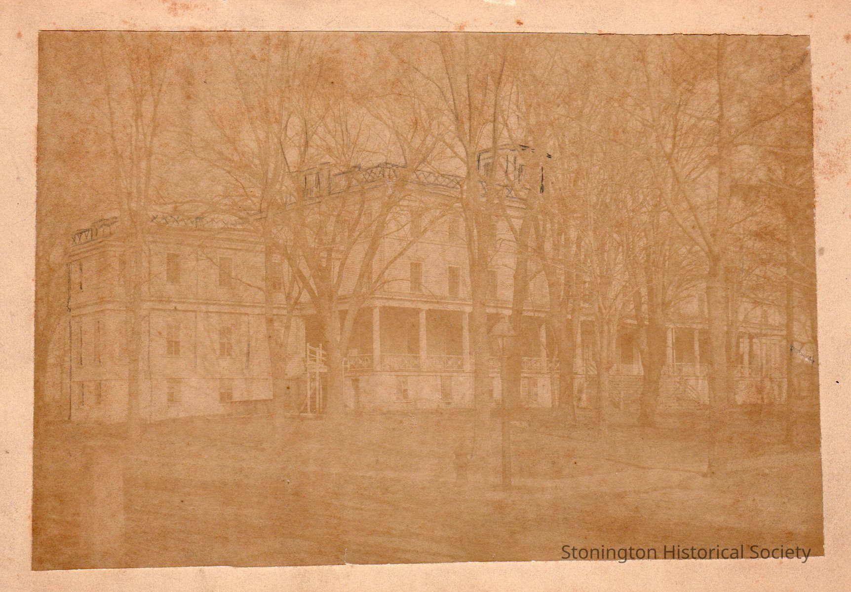 Sepia photograph, mounted on board, of the Wadawanuck House in Stonington Borough