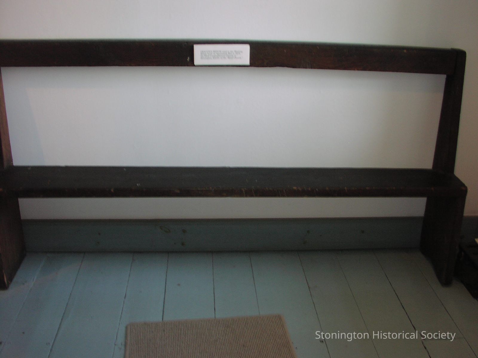 Deacon's bench used in the Meeting House built on Agreement Hill in 1674, the First Congregational Church of Stonington, known as the "Road Church."