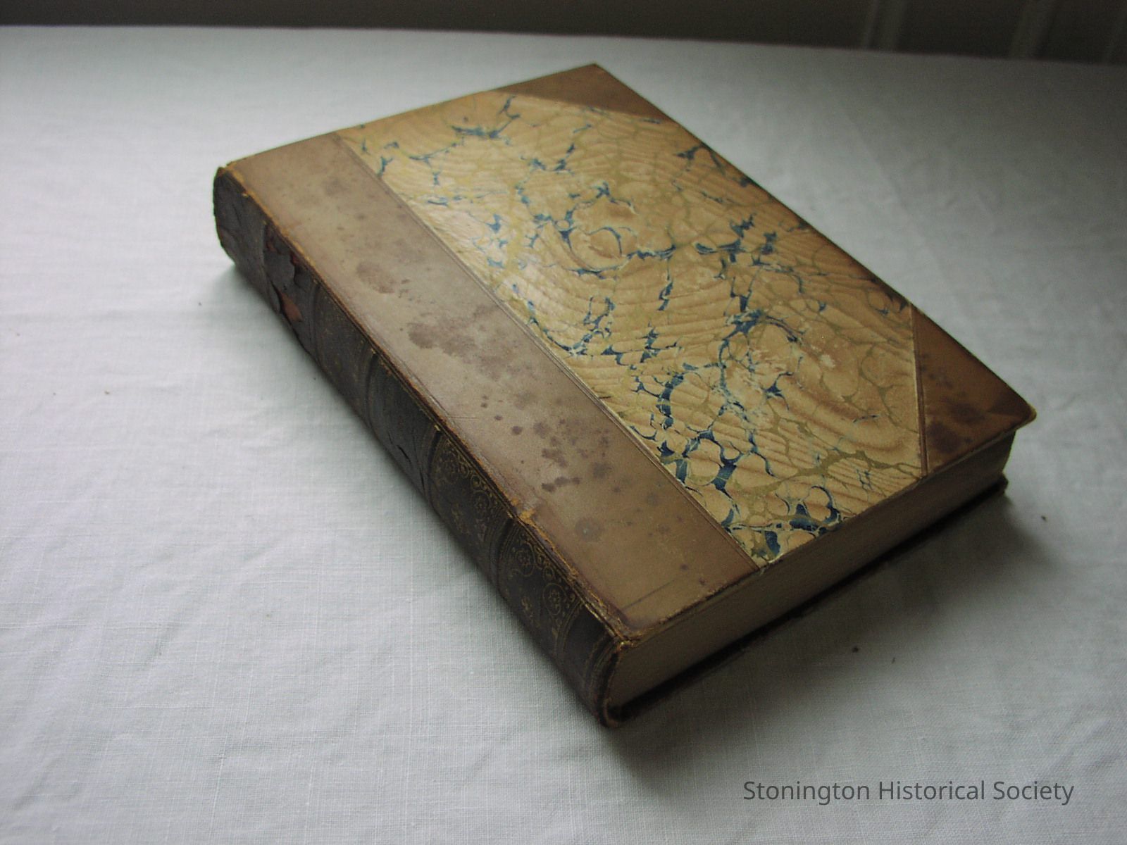 "Mrs. Browning" by Harriet Waters Preston, published by Houghton Mifflin Company, The Riverside Press, Cambridge, 1900. Marbled blue, beige and gold book cover and a tan spine with gold lettering and embellishments.