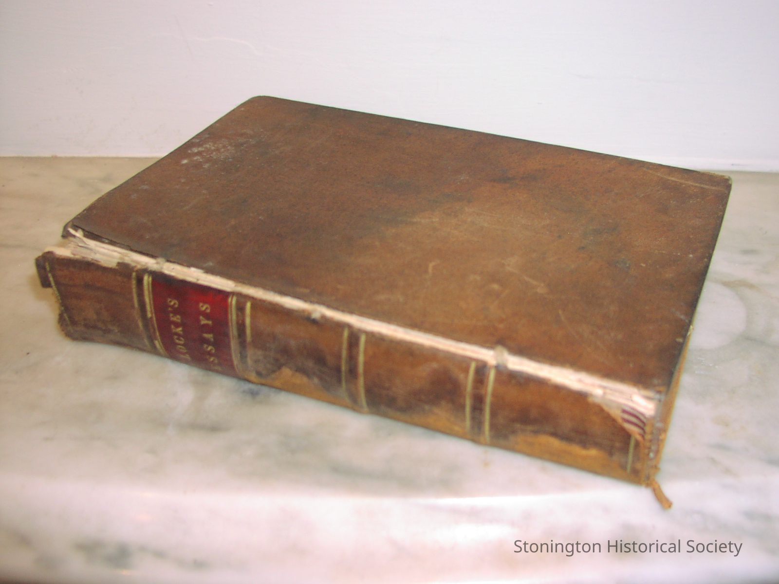 "Locke's Essays" by John Locke, published by T. Ellwood Zell, Philadelphia. Brown book cover, red square on spine, gold lettering and lining on the spine.