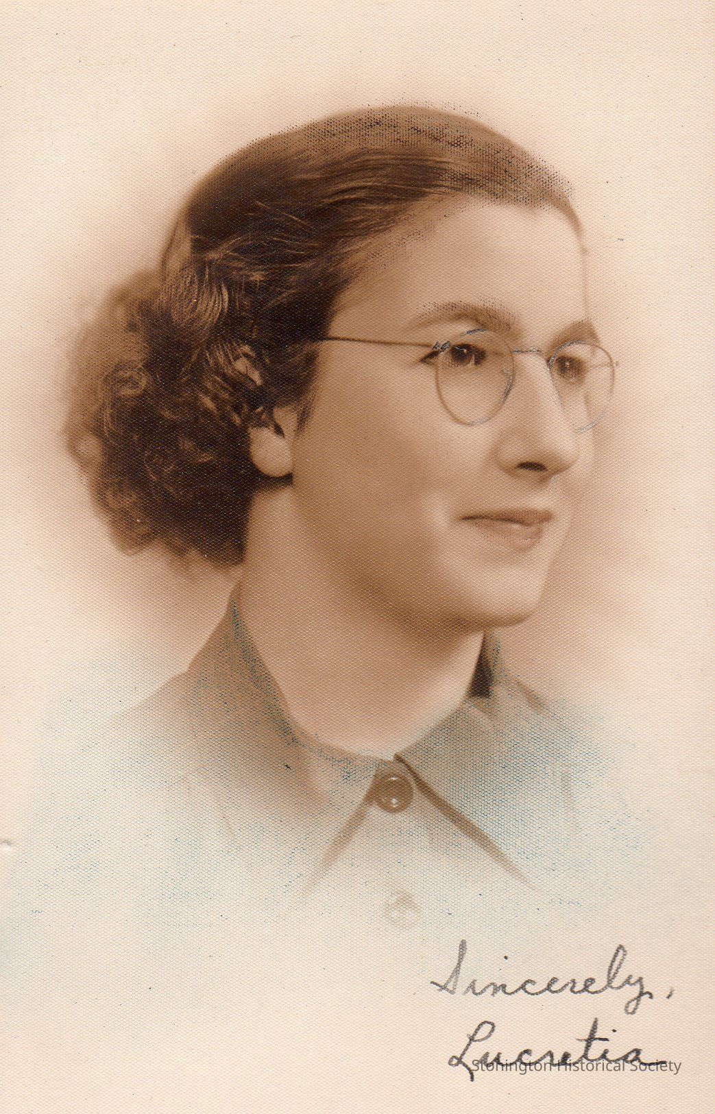 High School graduation portrait of Lucretia Ernest (Tubbs). Lucretia graduated from Stonington High School in 1938. (2 copies).