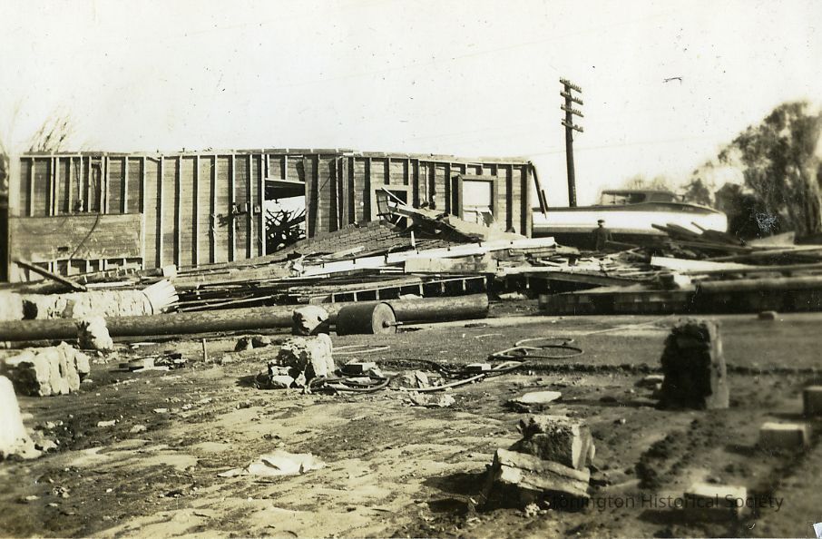 Destroyed property with boat on right side of image