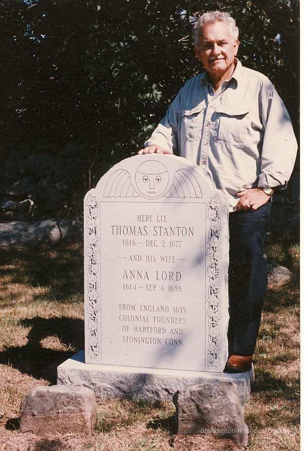 Gravestone for Thomas Stanton and his wife Anna Lord. Note on back "To Dorothea Gould with great affection - Bernard S." Photo dated 9/12/1995
