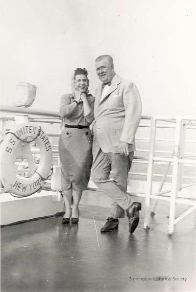 Fred and Dorothea Gould returning to the United States on SS United States-New York, August 2, 1954. (this is larger photo of item 2002.0613.709)