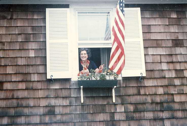 Dorothea watching Blessing of the Fleet from her house, July 1975 In section marked 19 NW Street
