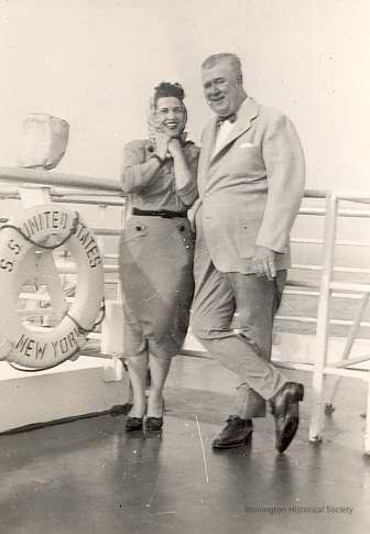 Fred and Dorothea on return to United States on board SS United States-New York, August 2, 1954 (larger duplicate print later)