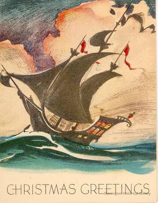 Vessel bringing Christmas greetings; sent by Jim and Royalle Trumbull date on back of card 12/20/1932