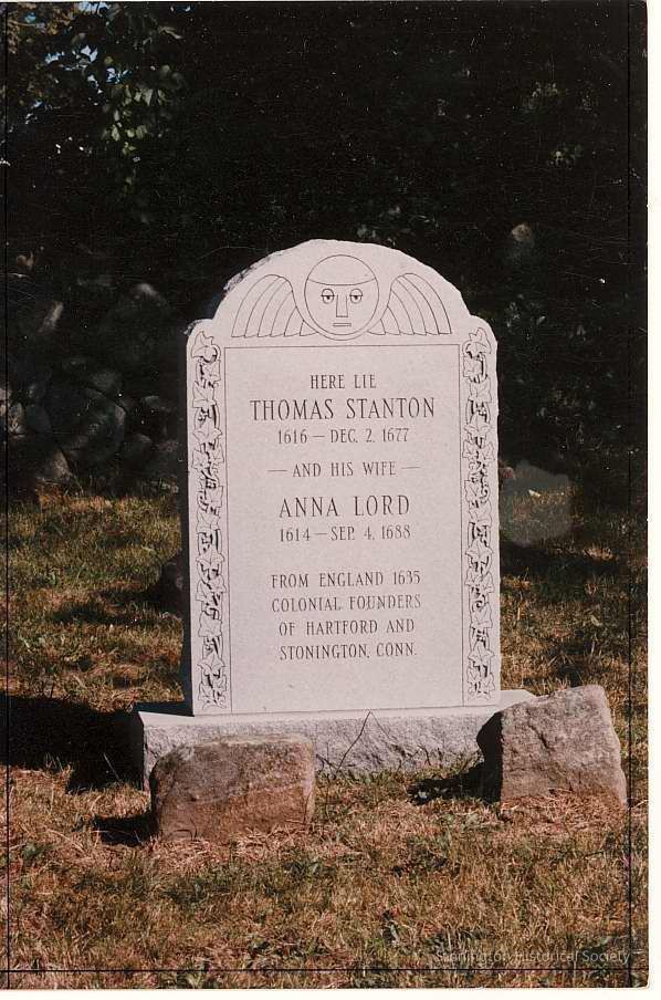 Gravestone for Thomas Stanton and his wife Anna Lord. Photo dated 9/12/1995