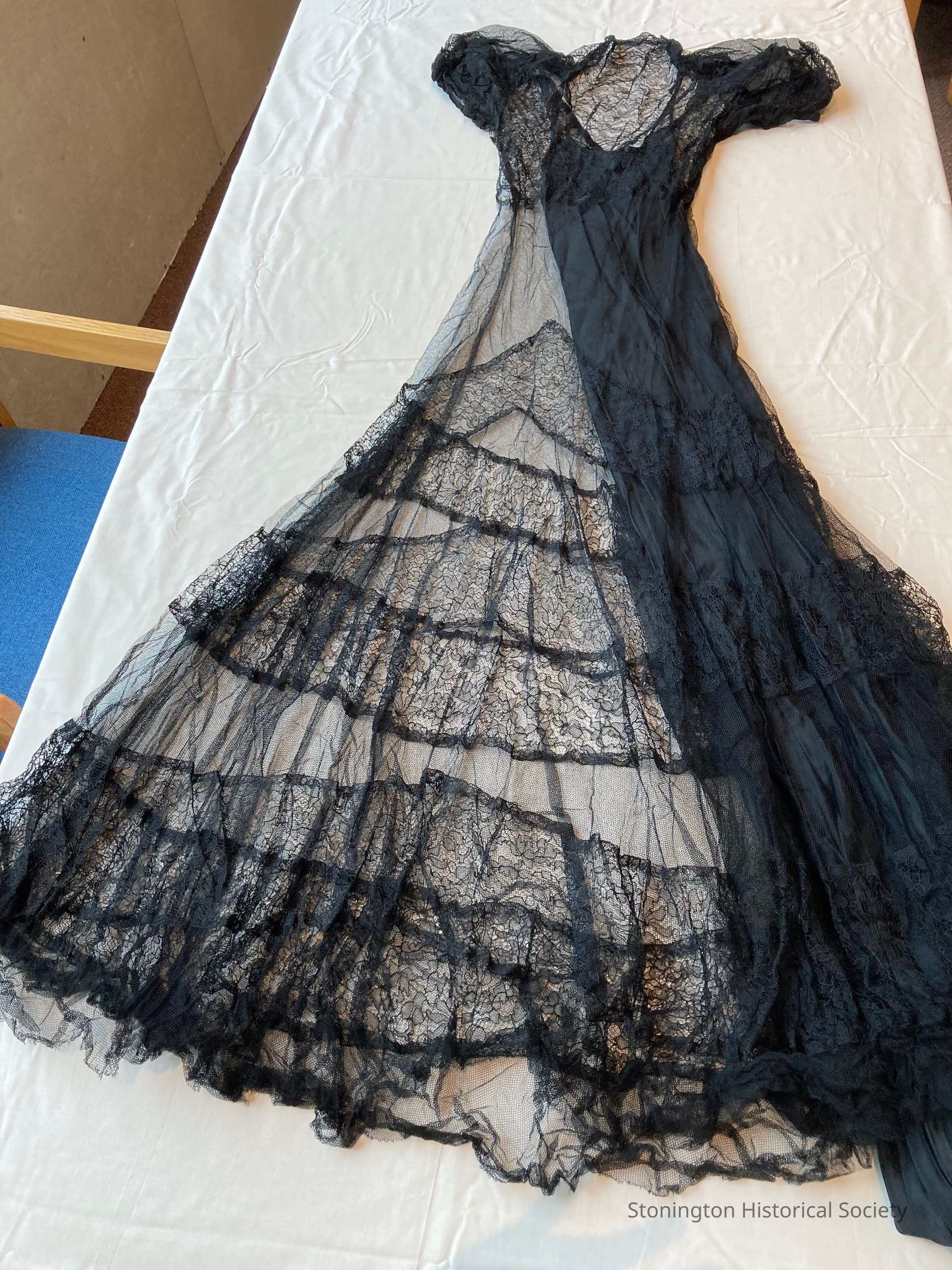 Black netting has 3 inch bands of lace