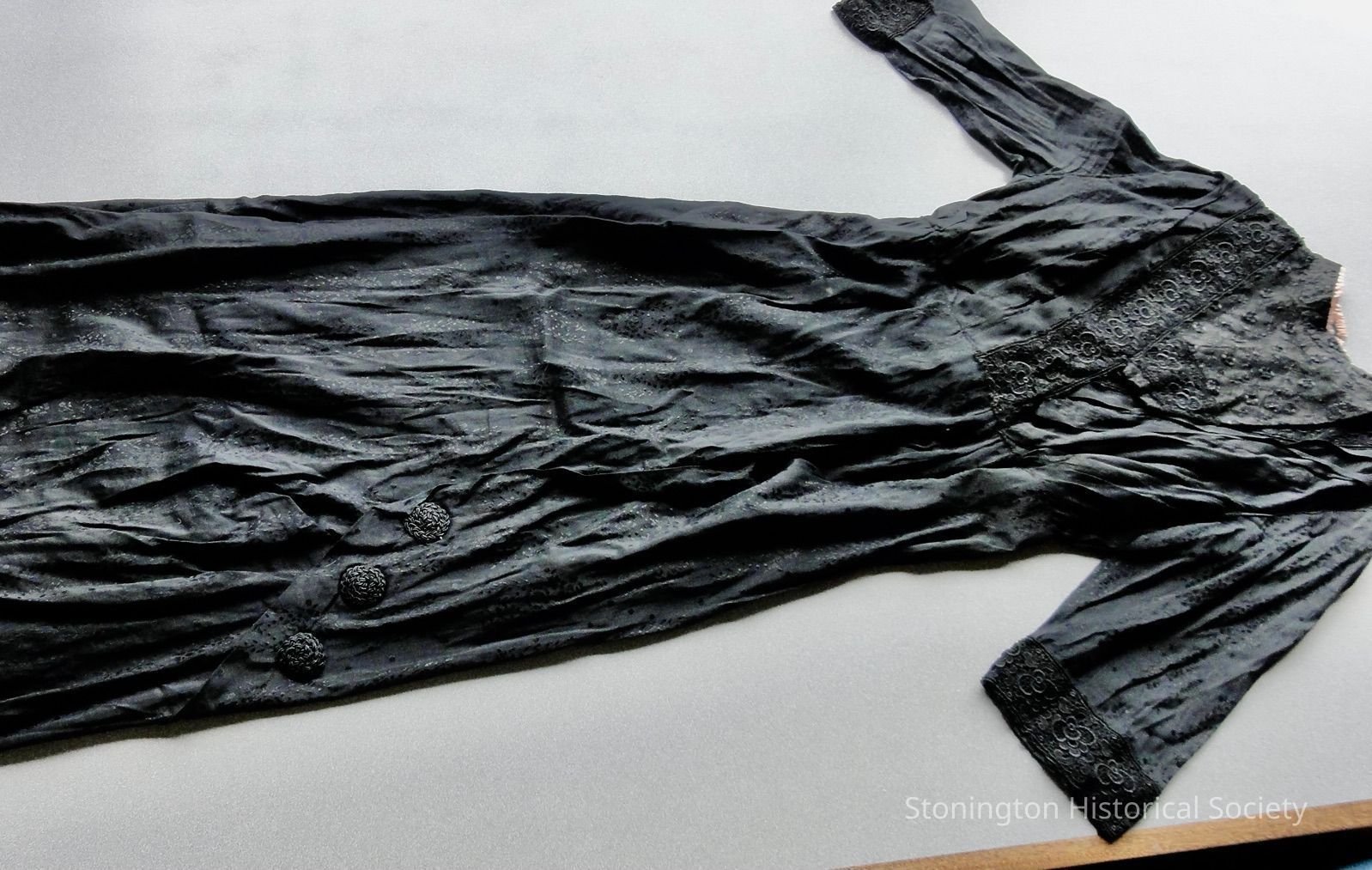 Hand stitching in black thread at bpdice lining in back of bodiceCollection