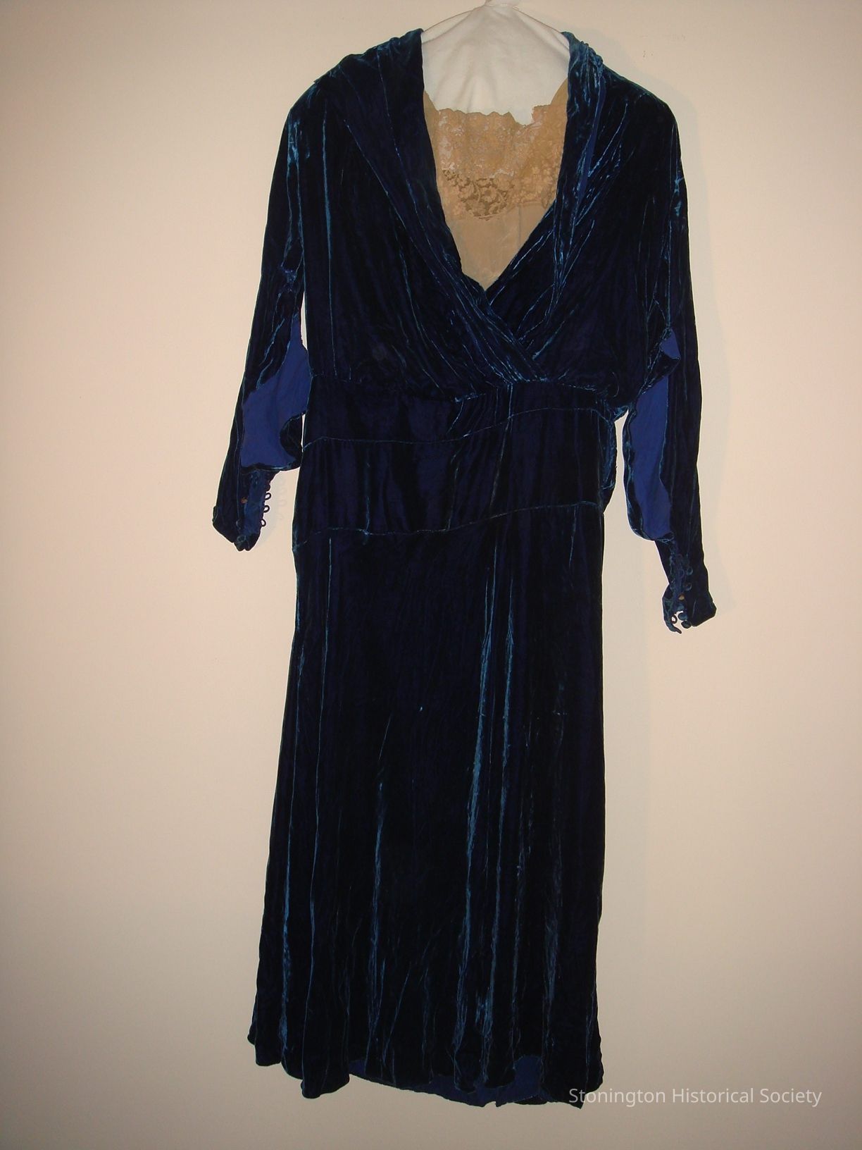 Blue velveteen evening dress