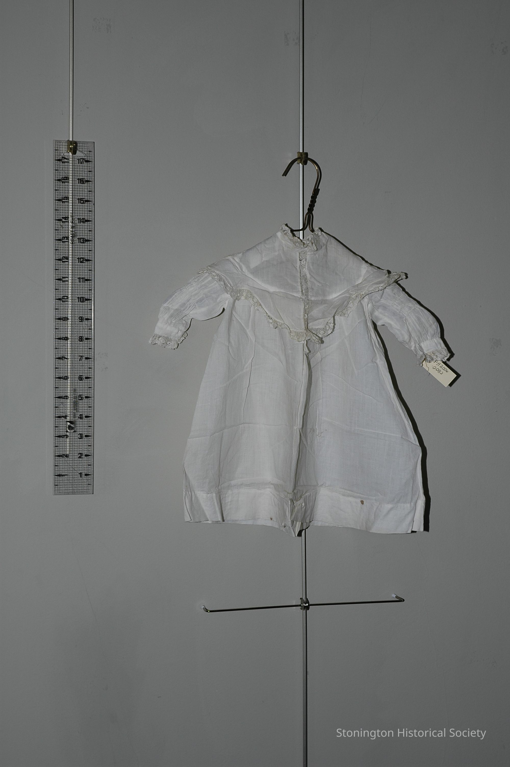 child' dress of a heavy white cotton with a diagonal stripe in the weave