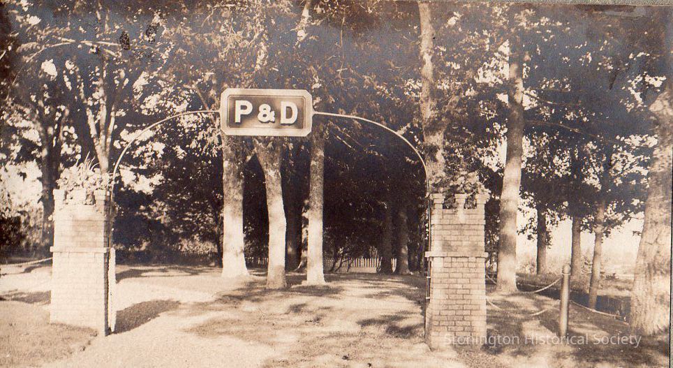 Black and white photograph of the entrance to the E. Phelps House (later the Paffard house) in Stonington, c. 1890-1895. The "P&D" stands for Phelps & Dodge.