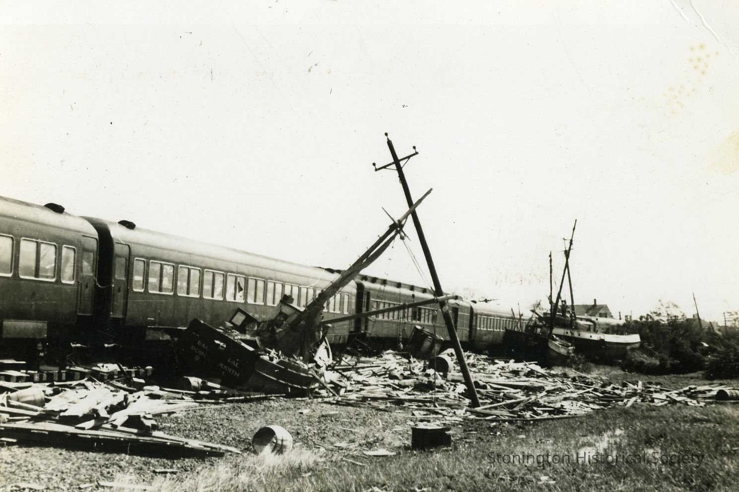 Fishing boats washed against derailed train