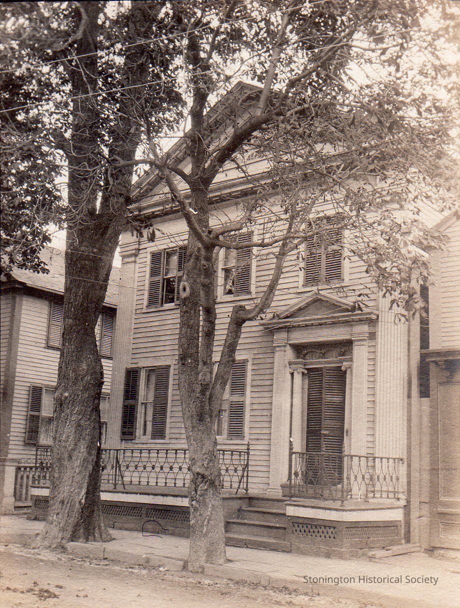 Black and white photograph of the Trumbull House, 85 Water Street, Stonington.