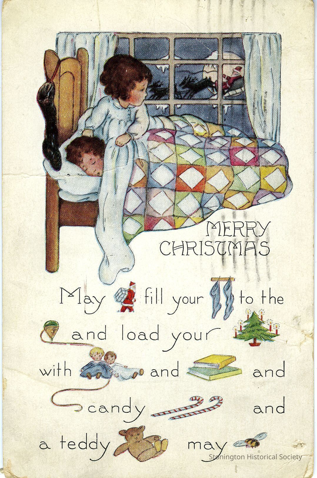 May (drawing of Santa) fill your (drawing of stockings) to the (drawing of top) and load your (drawing of tree) with (drawing of dolls) and (drawing of books) and candy (drawing of canes) and a teddy (drawing of bear) may (drawing of bee)