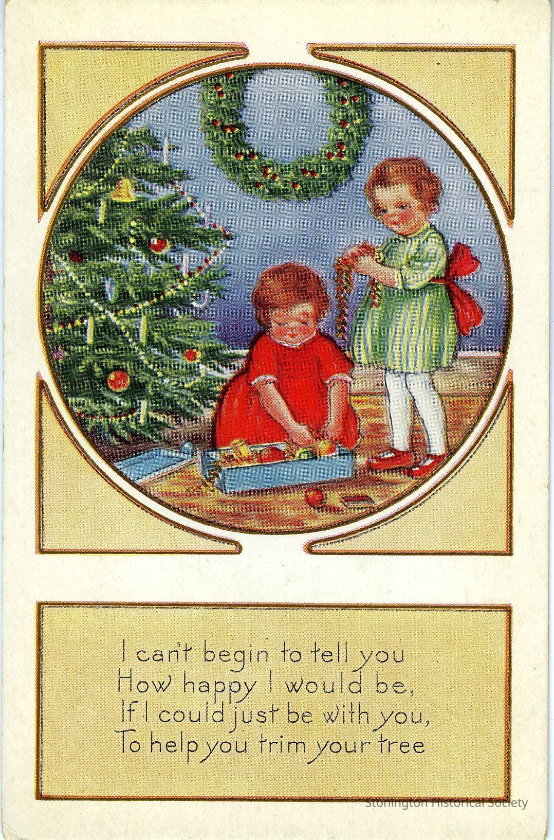 Christmas Greeting Postcard I can't begin to tell you How happy I would be, If I could just be with you, To help you trim your tree