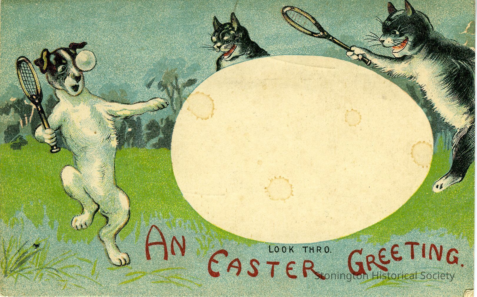 Easter Greeting card An Easter Greeting card must haev had shiny paper or something on it due to note below white "egg" area - Look thro