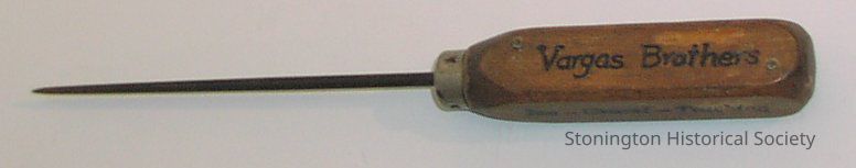 Vargas Brothers ice-pick, handle reads "Vargas Brothers, Ice - Gravel - Trucking"