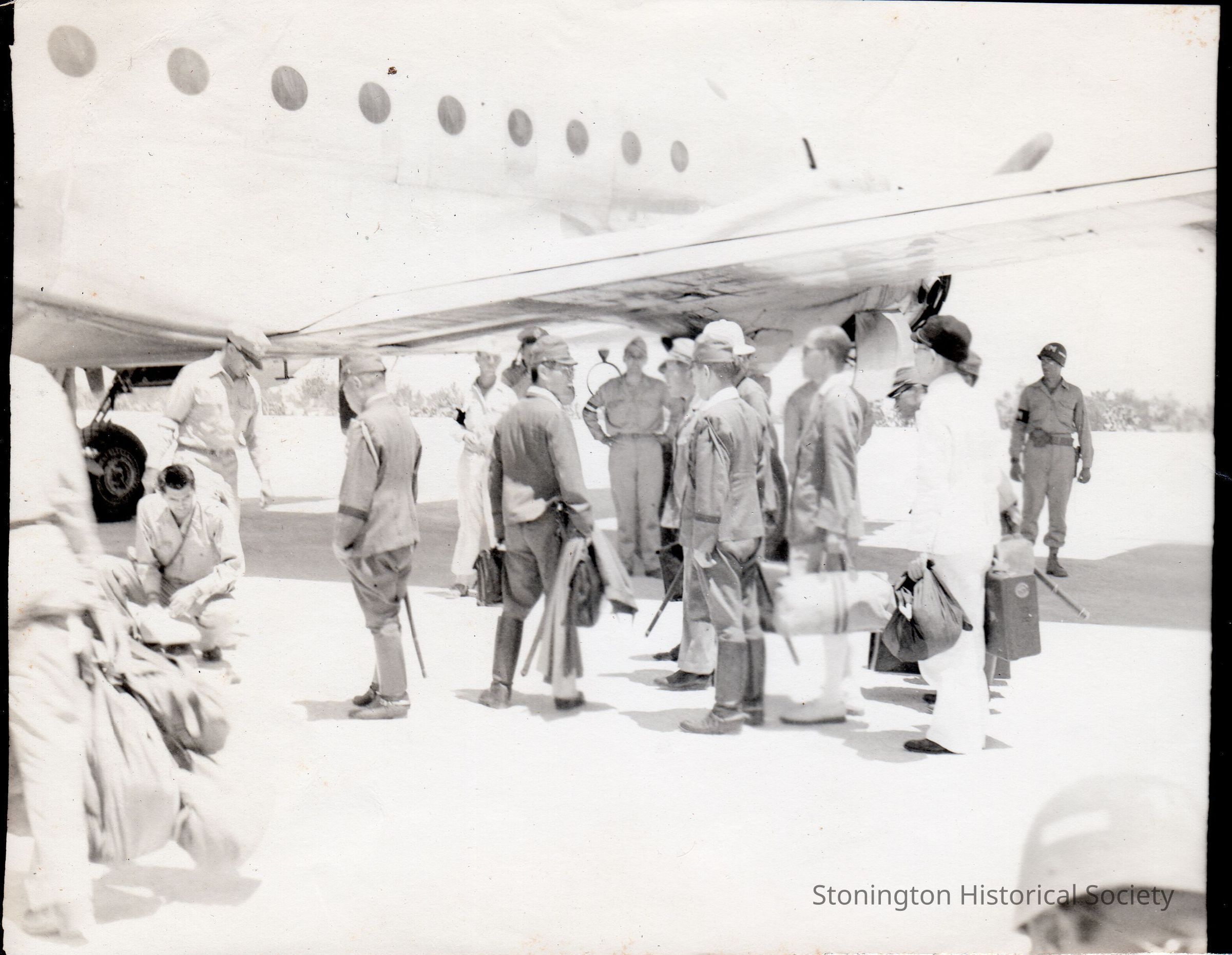 Black and white snapshot from the photograph collection of Frederick Eugene Weeks. Weeks was born in Stonington on March 16, 1922 and served with the U.S. Navy in the Pacific theater during WWII.Bouc