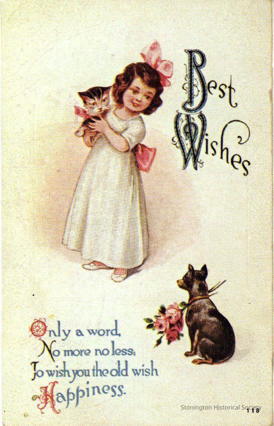 General Greeting card Best Wishes Only a word, No more no less, To wish you the old wish Happiness. Reproduction of card from 1890-1911