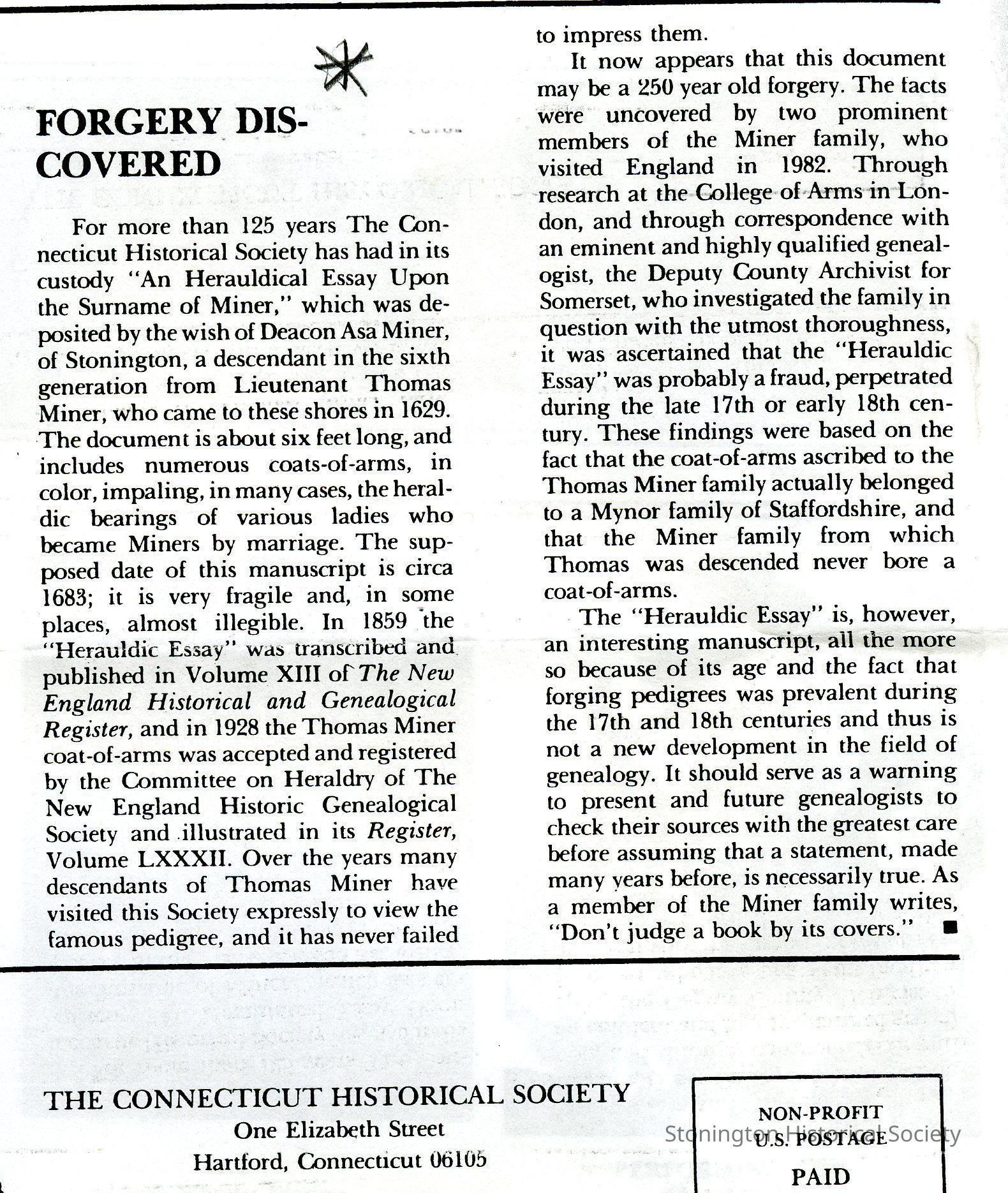 per Connecticut Historical Society newsletter April-May 1984, this was a forgery. See notes section for quotation from newsletter.Collection