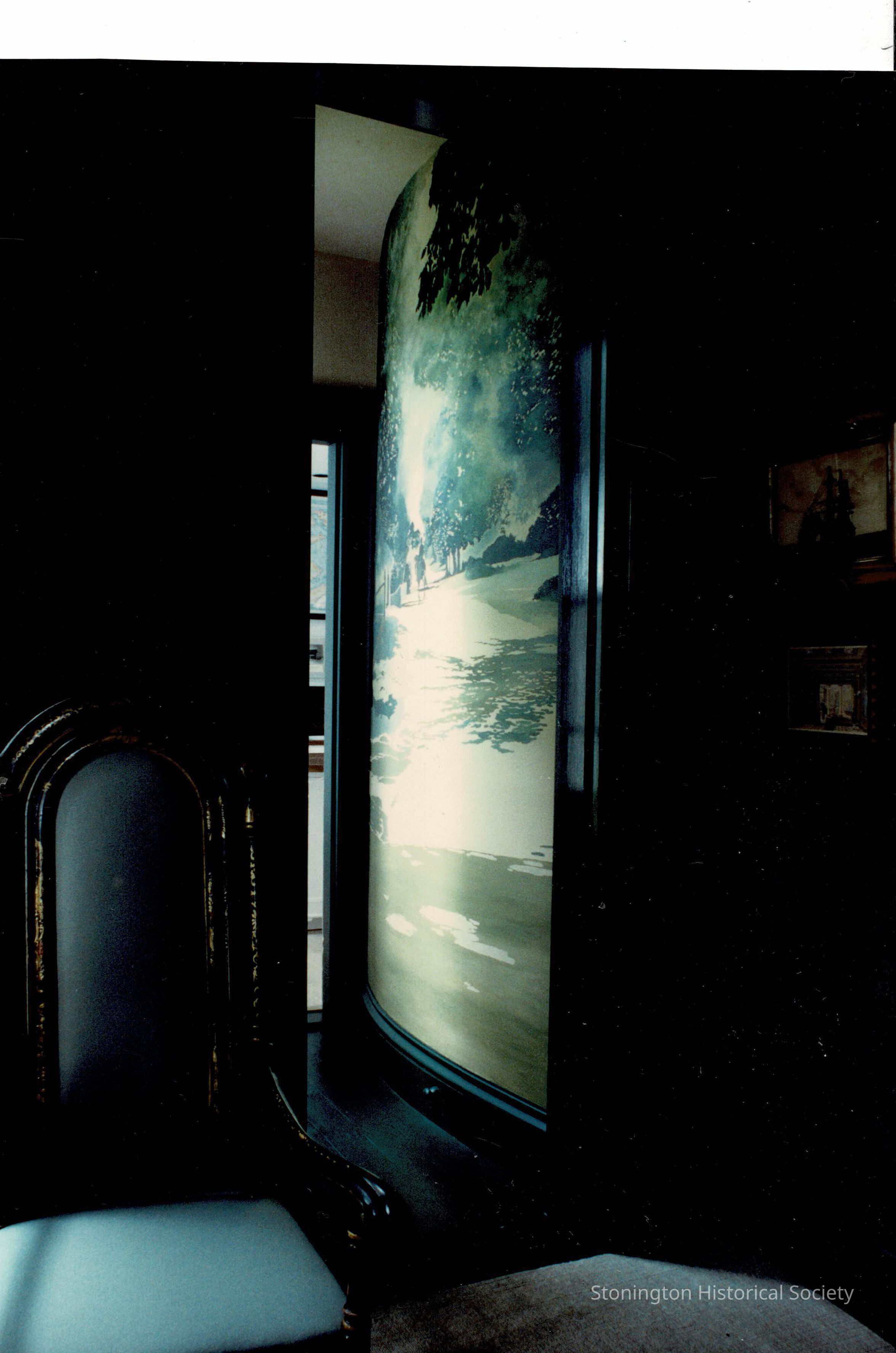 A view from Captain Palmer's bedroom into the kitchen passageway, known as "Palmer Road Hall" in the Designer's Show House in 1989. The wall treatment was designed by Image Associates of Groton, CT.Collection