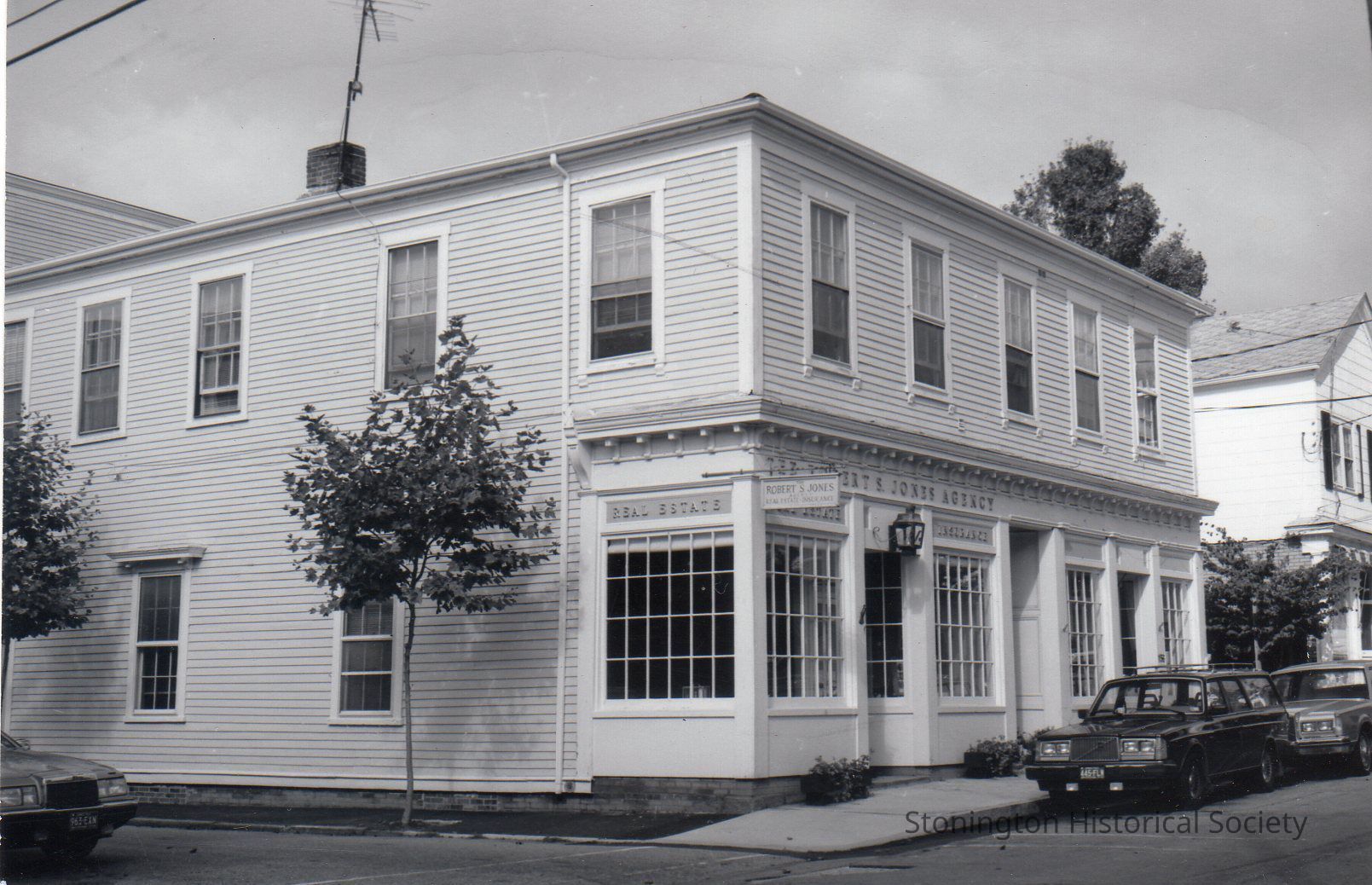 Black and white photograph postcard, Robert S. Jones Real Estate Agency, Stonington Borough. Photograph by Maurice LaGrua.