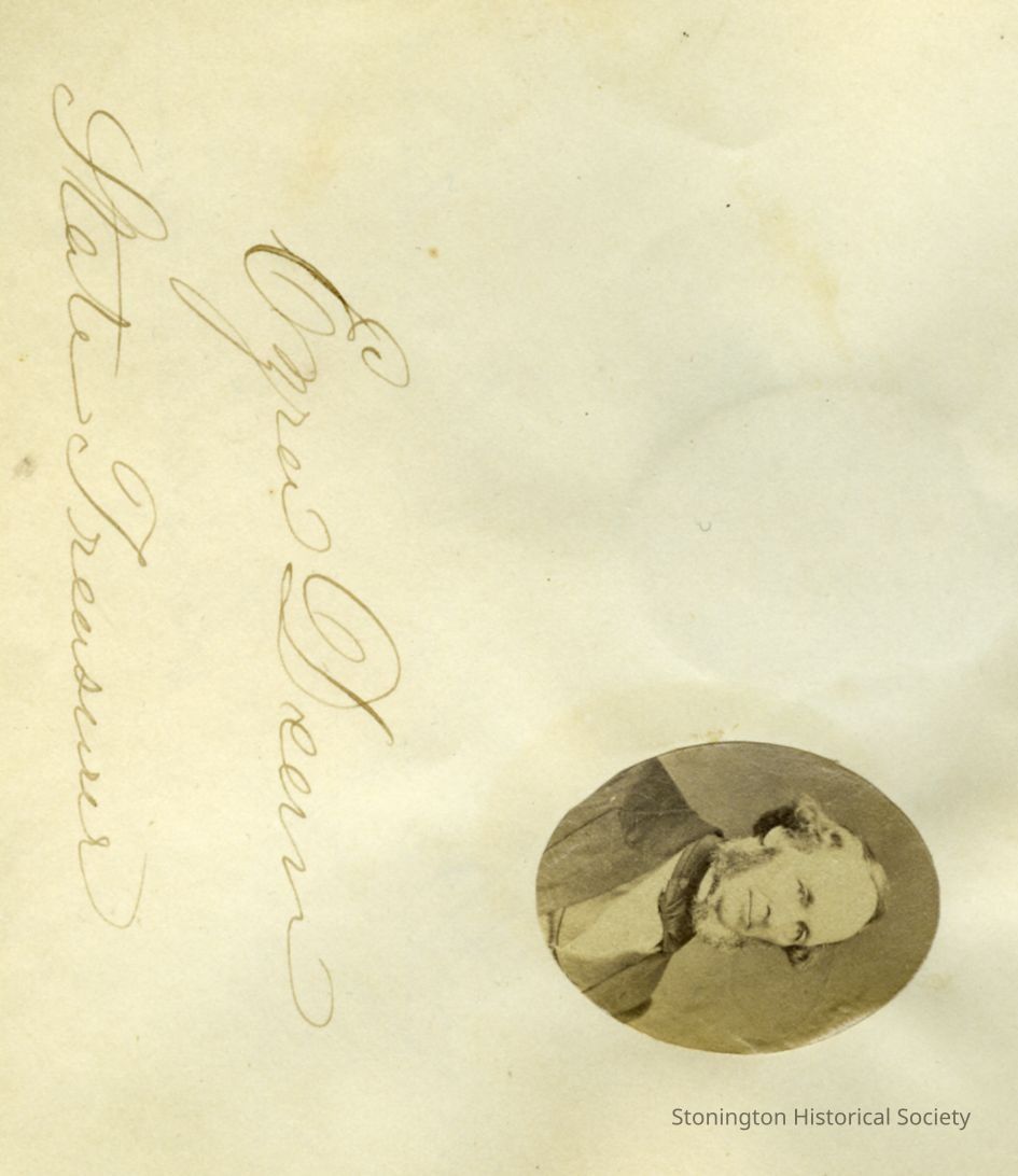 Small oval portrait of Ezra Dean, State Treasurer, in "Photographs and Autographs" book